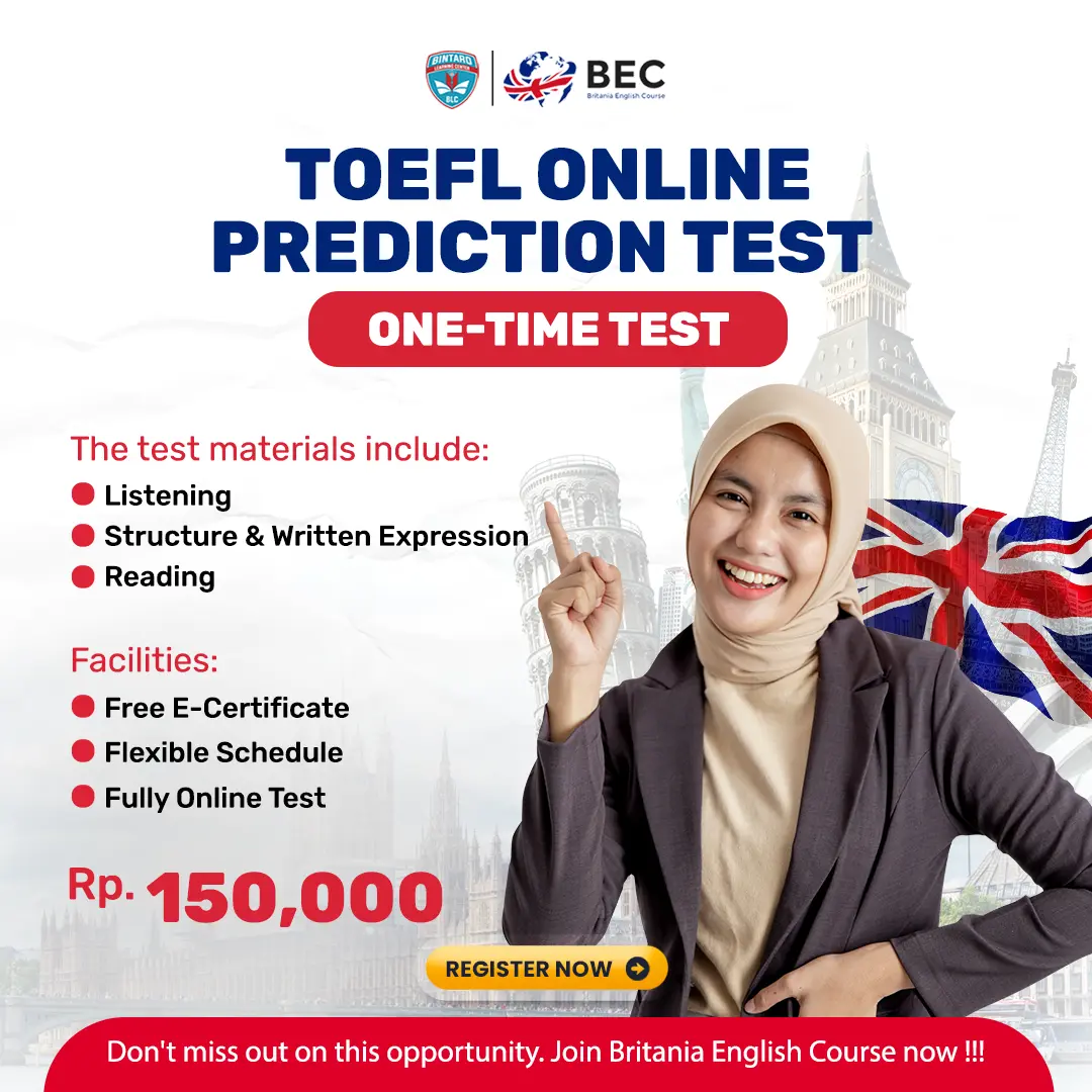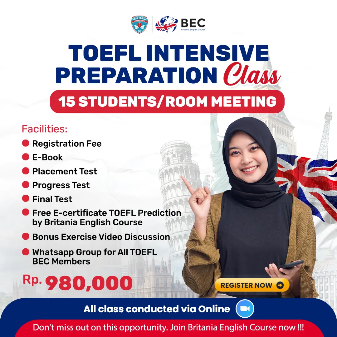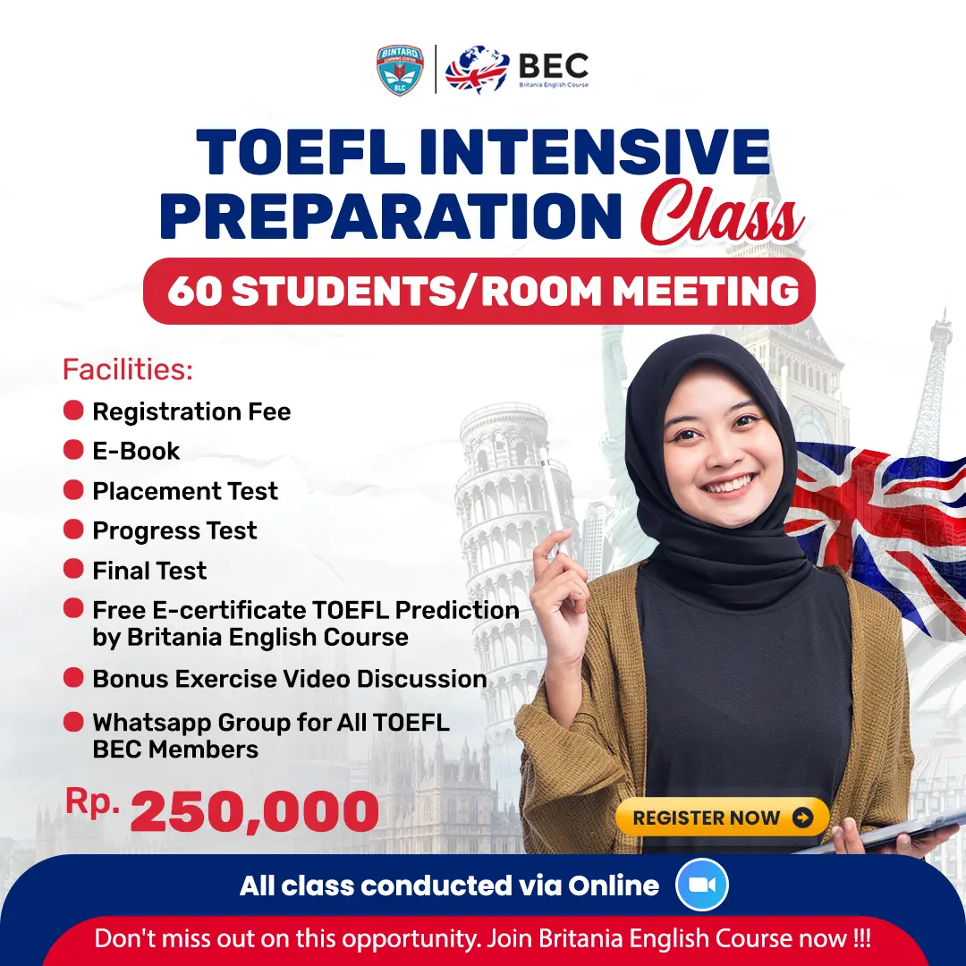 Britania English Course by BLC adalah pilihan terbaik bagi mereka yang ingin mencapai keberhasilan dalam ujian Bahasa Inggris dan meraih peluang beasiswa. Bergabunglah dengan kami dan raihlah sukses dengan BEC